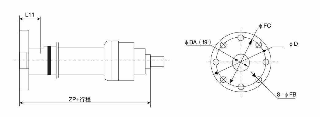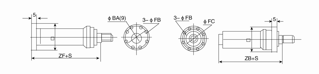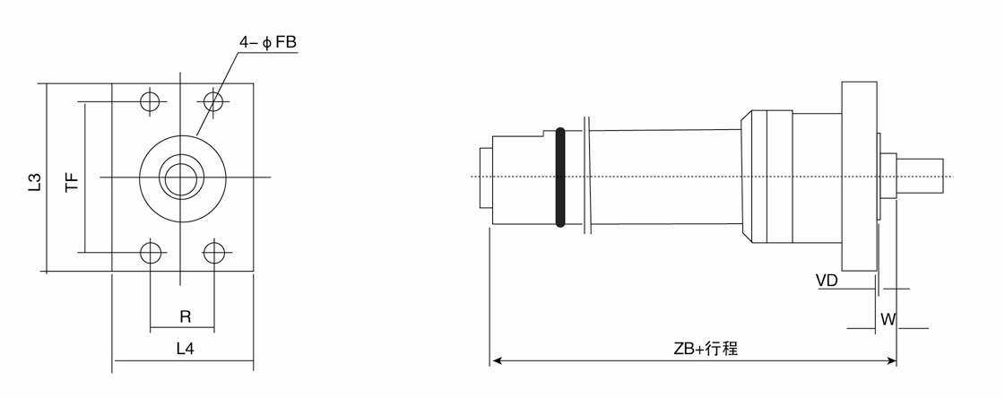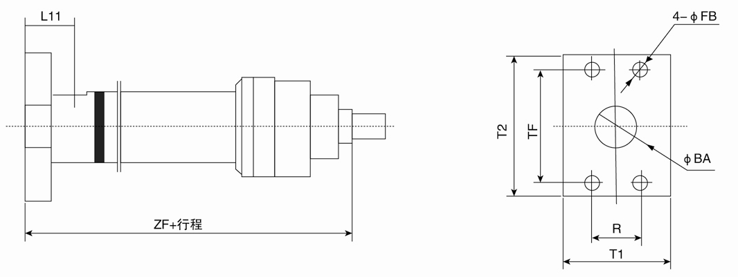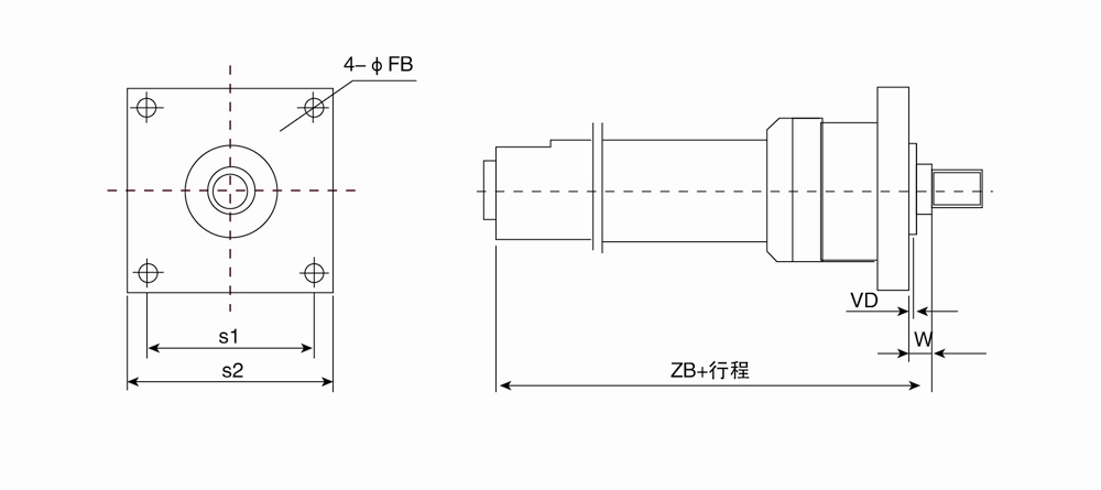F2=尾部長方法蘭(用于缸徑D≤125);