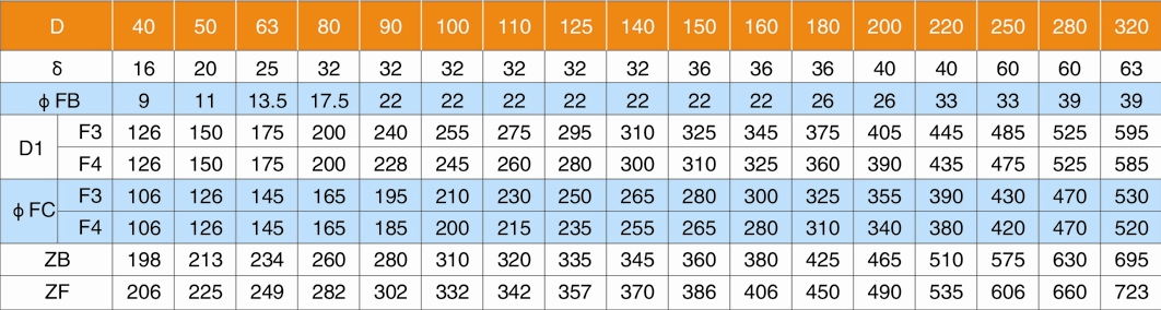 F3=頭部圓法蘭;F4=尾部圓法蘭;