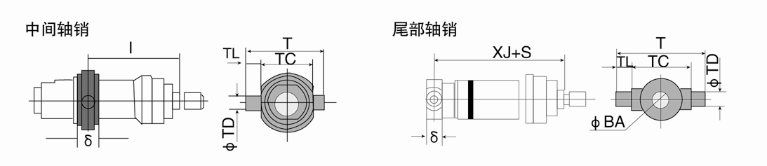 注:頭部軸銷安裝為缸徑40-100。