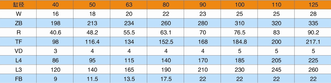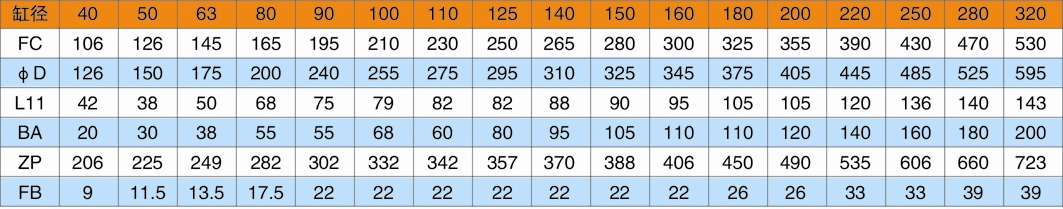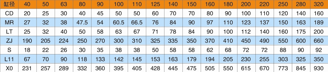 L:油口連接方式代號 L=內(nèi)螺紋連接(用于缸徑D≤220);F=法蘭連接(用于缸徑≥250)