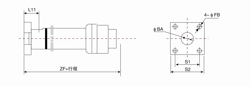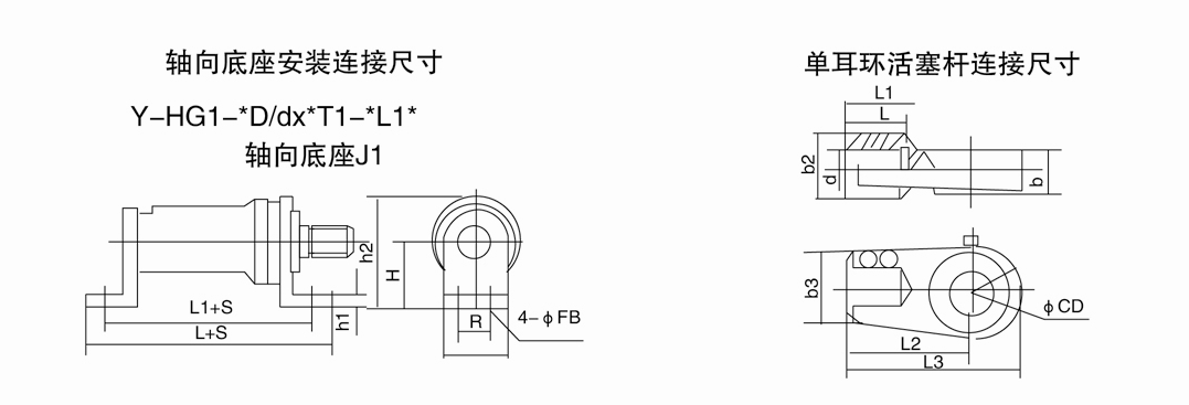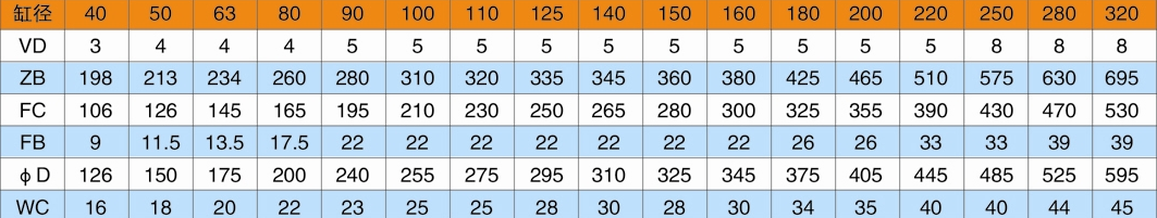 F1=頭部長方法蘭(用于缸徑D≤125);